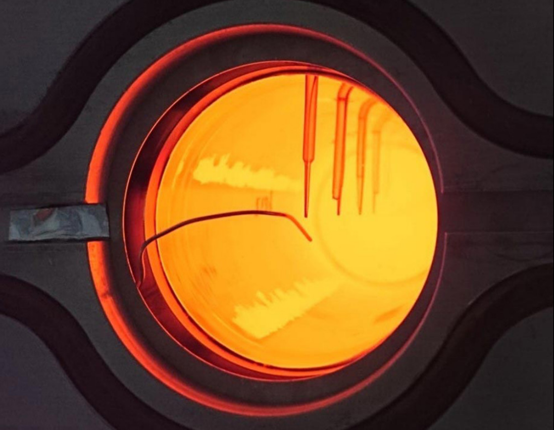 Thành phần chính của bẫy nhiệt gồm một ống trụ làm từ thạch anh, đạt mức nhiệt 1.050 độ C trong thí nghiệm và phát sáng. Ảnh: ETH Zurich/Emiliano Casati