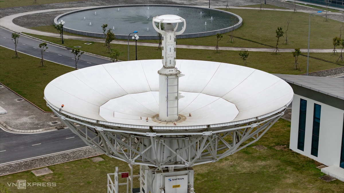 Trong ảnh là anten cao 9,3 m sẽ có nhiệm vụ bám theo vệ tinh trên quỹ đạo để giao tiếp. Anten sẽ nhận thông tin và gửi lệnh điều khiển lên vệ tinh trên băng tần S và nhận dữ liệu ảnh từ vệ tinh gửi xuống ở băng tần X, tốc độ thu nhận dữ liệu lên tới hơn 800 Mbps.