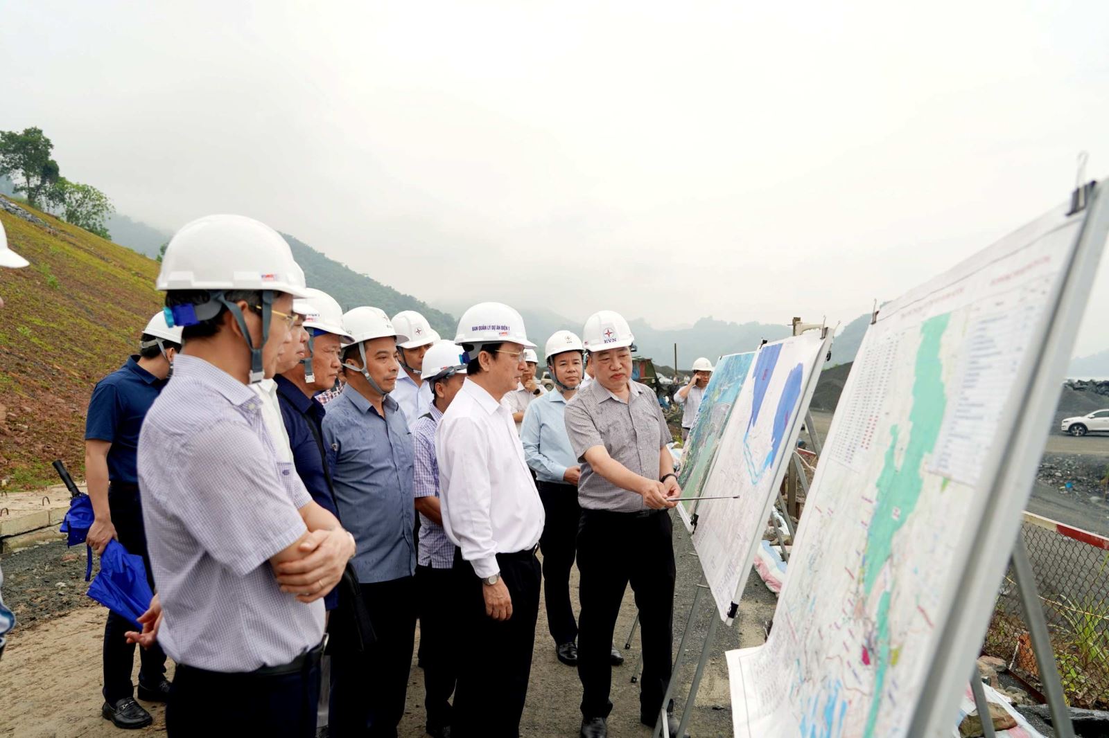 Bộ trưởng Bộ KH&CN Huỳnh Thành Đạt cùng đoàn công tác nghe báo cáo tại Công trình Thủy điện Hòa Bình.