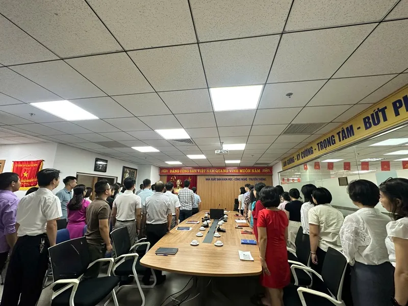 Sáng ngày 01/10/2025, Nhà xuất bản Khoa học - Công nghệ - Truyền thông (NXB KH-CN-TT) đã trang trọng tổ chức Lễ chào cờ tháng 10. Đây là một hoạt động thường kỳ vào ngày đầu tiên của tháng nhằm khơi dậy tinh thần yêu nước, ý thức trách nhiệm và tinh thần đoàn kết của toàn thể viên chức và người lao động của Nhà xuất bản.