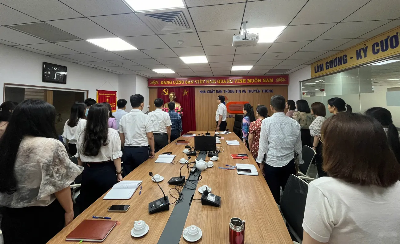 Chiều ngày 02/6/2025, NXB Thông tin và Truyền thông đã tổ chức chào cờ và hát Quốc ca theo thông lệ vào ngày đầu tiên đi làm của tháng, và tổ chức sơ kết tháng 5/2025. Dự Hội nghị có Ban Lãnh đạo và toàn thể cán bộ viên chức NXB Thông tin và Truyền thông tại trụ sở NXB - tầng 6, tòa nhà 115 Trần Duy Hưng và 2 chi nhánh tại TP. Hồ Chí Minh và chi nhánh Miền Trung - Tây Nguyên qua cầu truyền hình.