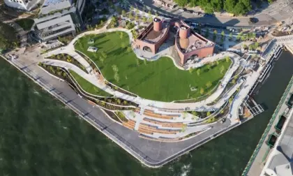 Công viên Wagner tại khu phố Battery Park City mở cửa trở lại hôm 29/7 sau hai năm cải tạo nhằm bảo vệ khu vực Lower Manhattan khỏi ngập lụt ven biển. Là một phần của dự án Battery Coastal Resilience, phần lớn diện tích 1,4 hecta của công viên được nâng cao thêm 3 m để che giấu tường chắn lũ dưới bãi cỏ trung tâm giúp ngăn sóng trào.
