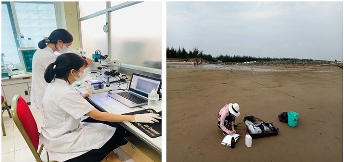 Nhóm nghiên cứu đã đánh giá mức độ tích lũy rác thải cỡ lớn tại các bãi biển Sầm Sơn, Hải Tiến, Hải Hòa thông qua số lượng và mật độ rác. Rác thải nhựa cỡ lớn được phân loại theo vật phẩm và tính chất polymer, xác định nguồn gốc của rác. Đồng thời, nồng độ vi nhựa trong môi trường nước và trầm tích tại các bãi biển và khu vực Cửa Hới cũng được xác định và phân loại theo kích thước, màu sắc, hình dạng để đánh giá rủi ro sinh thái.