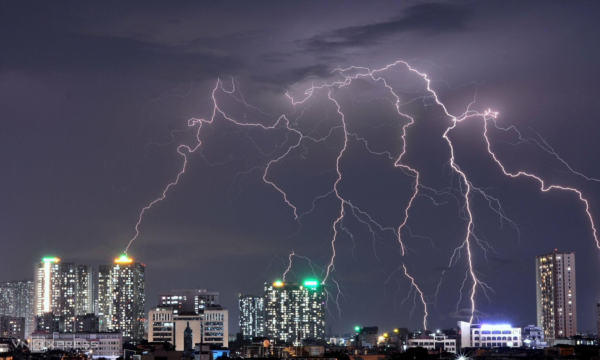 Từ 6h đến 9h ngày 5/6, hơn 10.200 tia sét xuất hiện trên bầu trời Hà Nội, trong đó hơn 7.000 tia đánh xuống mặt đất, theo Tổng cục Khí tượng Thủy văn. Trung bình, cứ 10 phút có hơn 470 cú sét đánh xuống đất. Trong đó khung 7h40 đến 8h50 sét đánh mạnh nhất. Khu vực Thường Tín, Phú Xuyên, Thanh Oai, Ứng Hòa xuất hiện sấm, sét dày đặc.