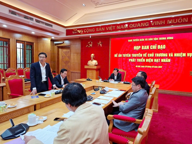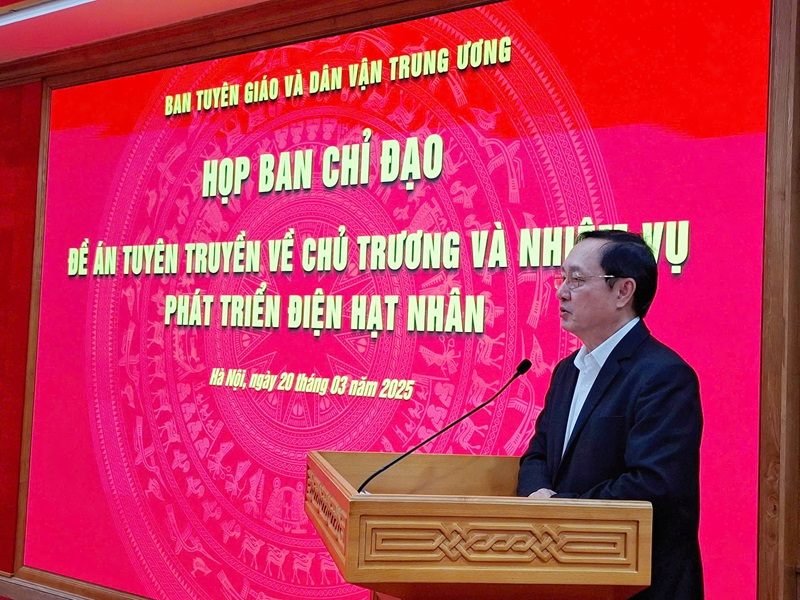 Chiều ngày 20/3/2025, đồng chí Huỳnh Thành Đạt, Ủy viên Trung ương Đảng, Phó Trưởng Ban Tuyên giáo và Dân vận Trung ương, Trưởng Ban Chỉ đạo Đề án “Tuyên truyền về chủ trương và nhiệm vụ phát triển điện hạt nhân” đã chủ trì cuộc họp Ban Chỉ đạo triển khai Đề án.