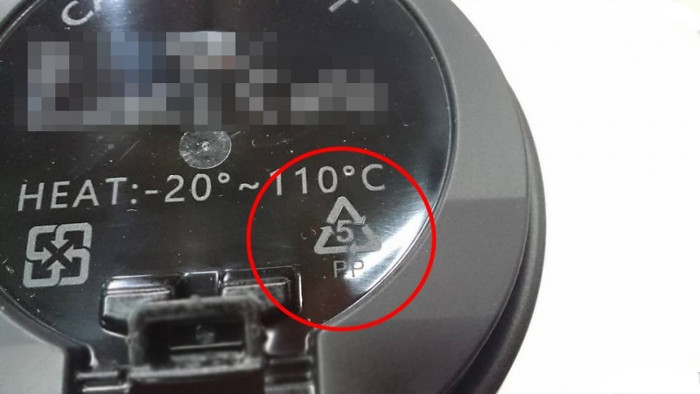 Số 5 là PP (nhựa polypropylene). PP thường có trên nắp hoặc đáy cốc cà phê, chai sữa thường, sữa chua hoặc chai nước trái cây. Chất này thường chịu được ở nhiệt độ 167 độ C nên có thể tái sử dụng, quay trong lò vi sóng. Tuy nhiên, cần lưu ý rằng một số hộp đựng thức ăn dưới đáy có hình tam giác với số 5 nhưng trên nắp là số 1. Số 1 là PET, chất không chịu được nhiệt độ cao nên khi đặt trong lò vi sóng cần phải bỏ nắp hộp.