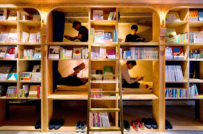 Book and Bed Tokyo được ra đời dành cho những người đam mê và yêu thích sách tại Nhật Bản. Là một tác phẩm nghệ thuật của hai nhà thiết kế Makoto Tanijiri và Ai Yoshida thuộc công ty thiết kế Suppose, đây là một mô hình nhà nghỉ kết hợp với thư viện tại thành phố Tokyo. Tọa lạc tại tầng 7 của khu chung cư cao tầng tại quận Ikebukuro, nhà nghỉ được trang bị hơn 1.700 đầu sách bằng tiếng Anh và tiếng Nhật. Tuy nhiên, con số này được dự đoán sẽ tăng lên gấp đôi trong tương lai, theo lời các ông chủ tại đây bật mí.