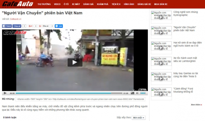 Trang tin Cafe Auto xuất bản nhiều video nhưng không ghi nguồn - Ảnh chụp màn hình trang tin cafeauto.vn