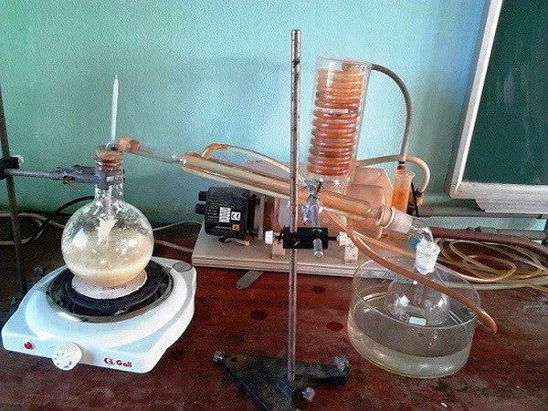 Bộ chưng cất lôi cuốn hơi nước tinh dầu tỏi. (Nguồn: quangngai.gov.vn)