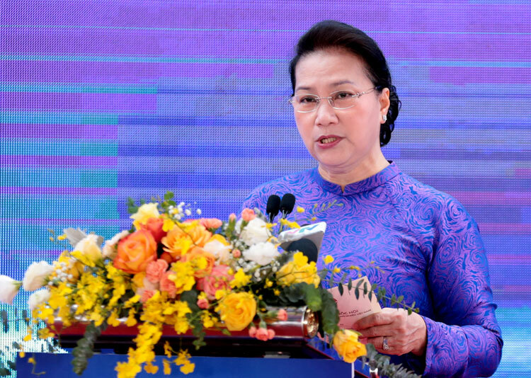 Chủ tịch Quốc hội Nguyễn Thị Kim Ngân đánh giá cao nỗ lực của Bộ Khoa học và Công nghệ trong thu hút nhà đầu tư đến Khu Công nghệ cao Hòa Lạc. Ảnh: Anh Tuấn