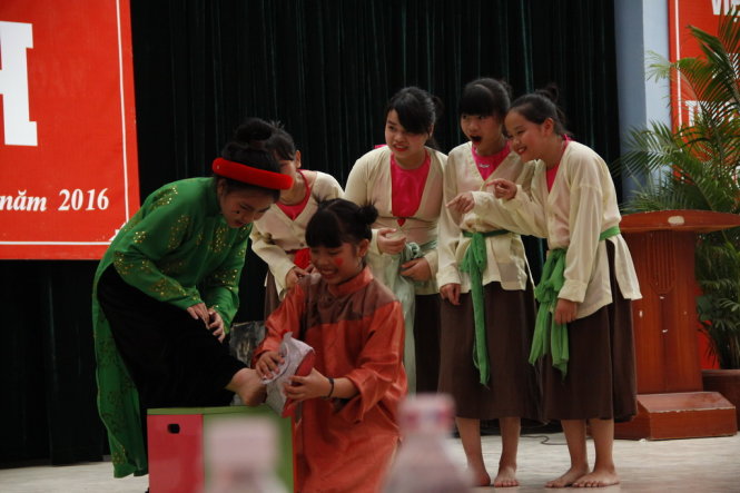 Học sinh trường tiểu học Bạch Mai hóa thân vào nhân vật truyện cổ tích Tấm Cám - Ảnh: Đức Triết
