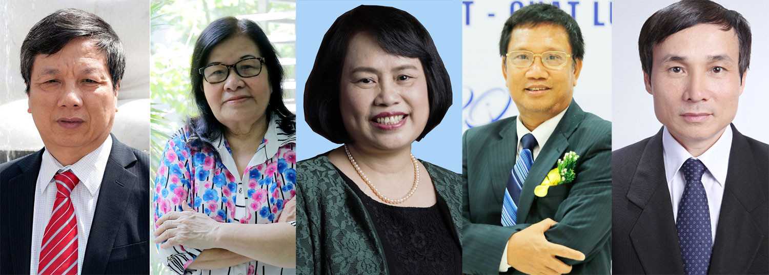 Các khách mời tại buổi Giao lưu trực tuyến sắp tới gồm GS-TS Nguyễn Gia Bình, TS-DS Nguyễn Thị Ngọc Trâm, PGS-TS Bùi Thị Mai An, TS Hoàng Đức Thảo, GS-TS Mai Trọng Khoa (từ trái sang phải)