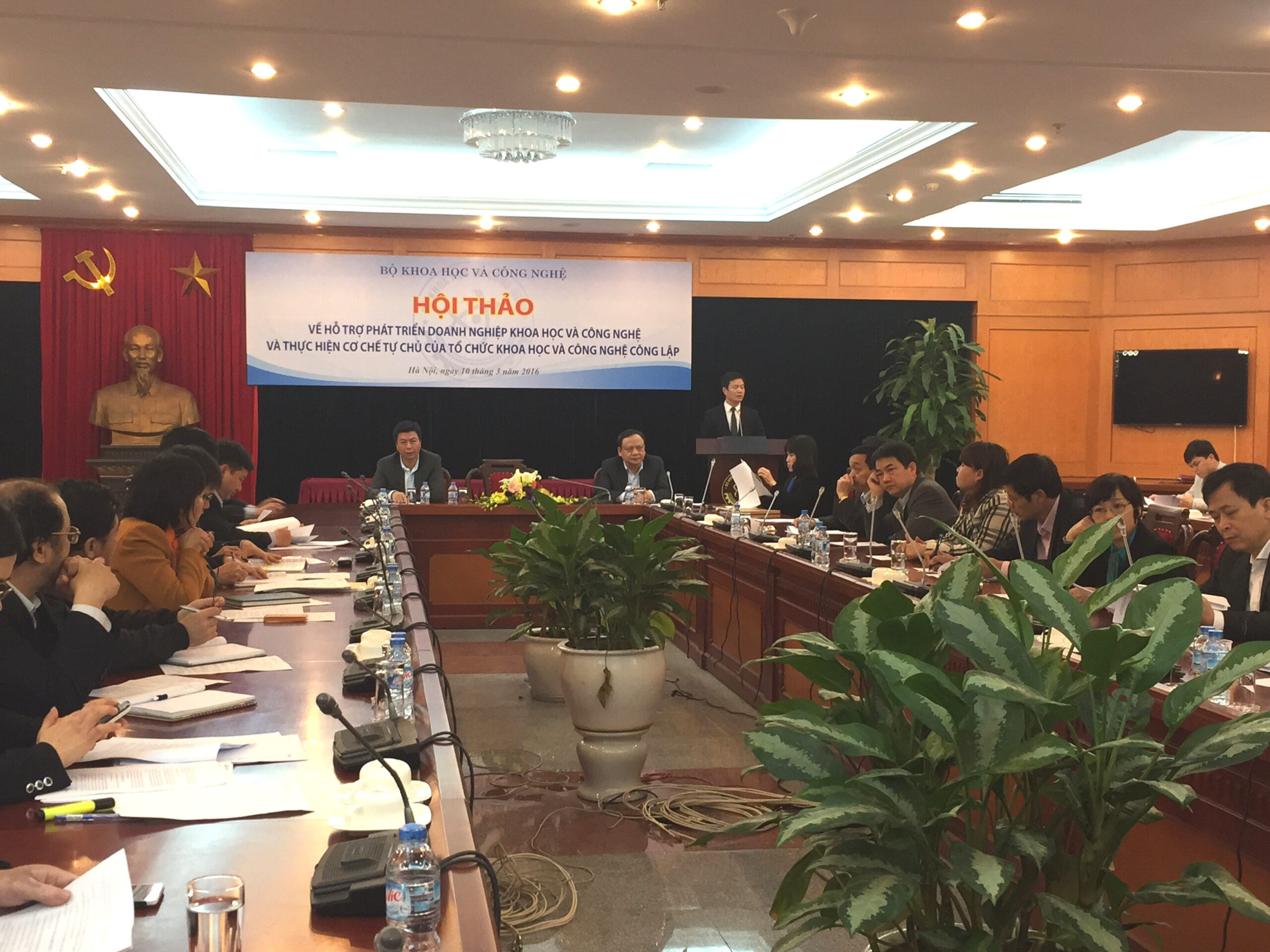 Nhằm đề xuất một số giải pháp nâng cao hiệu quả triển khai thực hiện Chương trình trong giai đoạn tới, ngày 10/3/2016, Vụ Tổ chức cán bộ (Bộ KH&CN) đã tổ chức Hội thảo: Hỗ trợ phát triển doanh nghiệp KH&CN và thực hiện cơ chế tự chủ của tổ chức KH&CN công lập. Tham dự Hội thảo có lãnh đạo các đơn vị thuộc Bộ KH&CN như: Vụ Tổ chức cán bộ, Cục Phát triển thị trường và Doanh nghiệp KH&CN, Văn phòng các Chương trình KH&CN quốc gia, các Sở KH&CN, các doanh nghiệp, viện nghiên cứu, trường đại học...