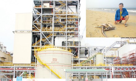 Một góc nhà máy Formosa (ảnh lớn). Ngư dân hoang mang trước việc cá biển chết bất thường (ảnh nhỏ). Ảnh: PV.