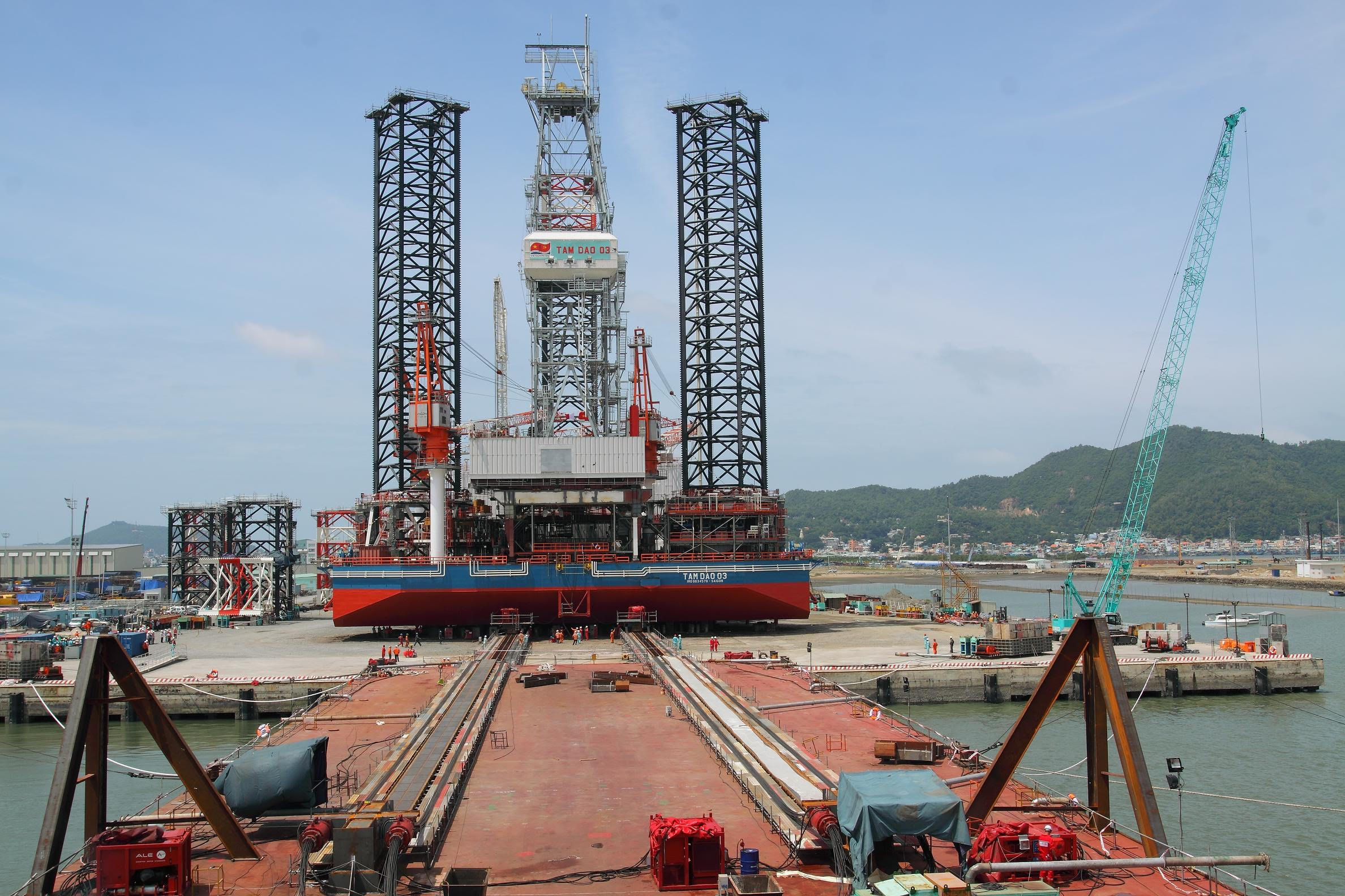 Giàn khoan tự nâng 90m nước - Tam Đảo 03 là giàn khoan đầu tiên Việt Nam chế tạo thành công, qua đó khẳng định trình độ, năng lực của các kỹ sư Việt Nam trong ngành công nghiệp đòi hỏi hàm lượng chất xám cao (Ảnh PVShipyard)