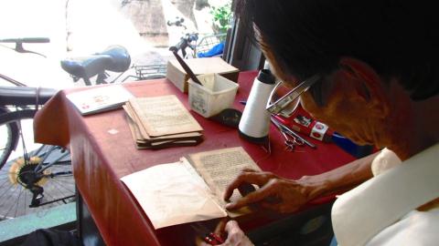 Trong căn nhà nhỏ cuối con hẻm trên đường Lý Chính Thắng, quận 3, TP HCM, người ta thường thấy một người đàn ông trung niên cẩn thận dùng kéo cắt chỉ, tháo rời cuốn sách rồi xếp lại thành từng trang theo số thứ tự. Ông luôn nâng niu và trân trọng từng quyển sách cũ.