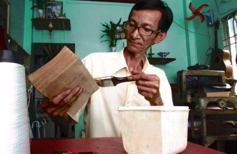Mặc dù tuổi đã cao nhưng hằng ngày ông vẫn ngồi đó, cặm cuội phục chế cho từng cuốn sách như cố níu giữ hoài niệm xưa cũ.