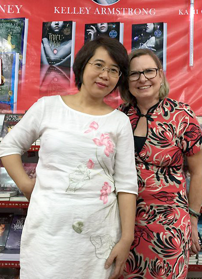 Bà Claudia Kaiser bên dịch giả Nguyễn Lệ Chi - chủ thương hiệu sách Chibooks - ở Hội sách TP HCM lần thứ chín.