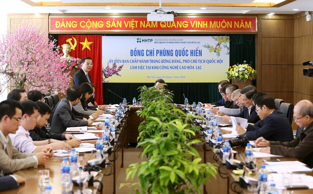 Trong chương trình công tác năm 2018, ngày 01/3/2018, đoàn công tác do đồng chí Phùng Quốc Hiển, Ủy viên BCH Trung ương Đảng, Phó Chủ tịch Quốc hội làm trưởng đoàn đến làm việc với Bộ Khoa học và Công nghệ (KH&CN) về tình hình hoạt động của Khu CNC Hòa Lạc.
