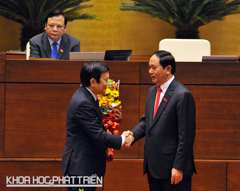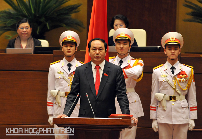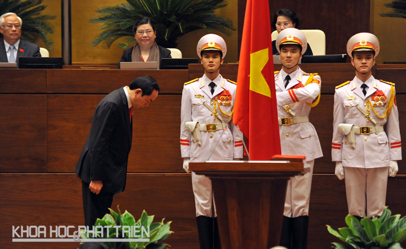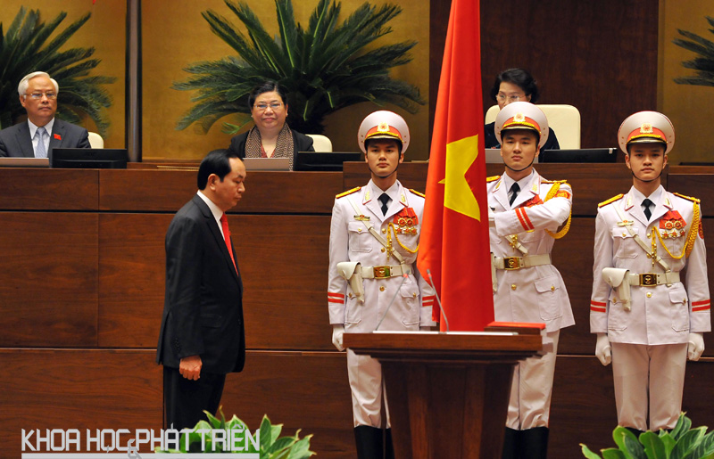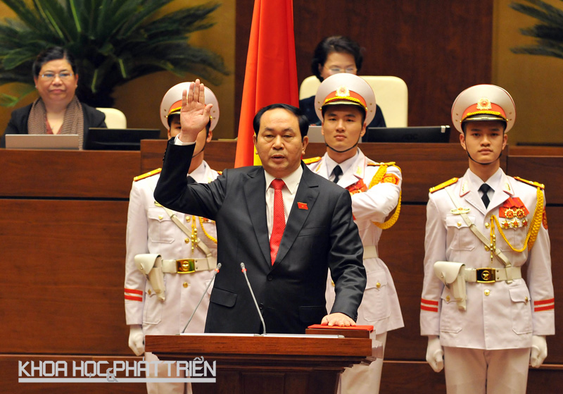 Tân Chủ tịch nước Trần Đại Quang cũng thực hiện nghi lễ tuyên thệ nhậm chức ngay sau đó.