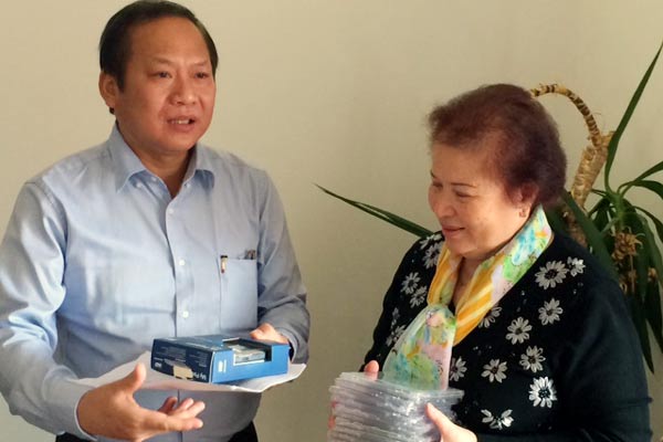 Thứ trưởng Bộ TT&TT Trương Minh Tuấn tặng tài liệu tuyên truyền biển đảo