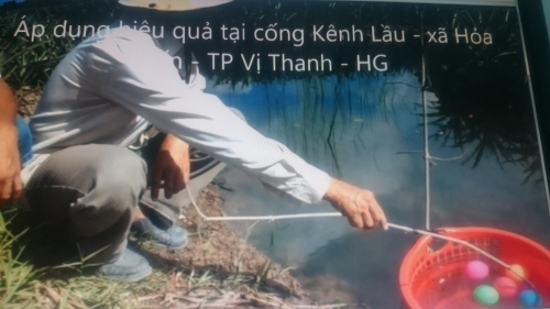 Ông Lê Văn Tám (ấp 1, xã Vị Tân, TP Vị Thanh) cho biết, ông đang sử dụng một lúc 05 trái nổi cho mương vườn nhà mình, mỗi trái nổi có ghi rõ độ mặn (từ 1/1000ml, 2/1000ml, 3/1000ml, 4/1000ml, 5/1000ml) ngay trên trái bóng. Khi ra vườn kiểm tra, ông Tám thấy trái nào nhô lên 5mm thì biết được độ mặn nguồn nước ngay thời điểm đó là bao nhiêu và khi nước ngọt đổ về trái nổi nào có chứa độ mặn cao bên trong thì chìm trước.