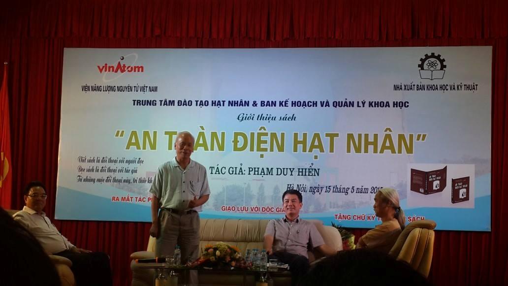 Hòa chung không khí sôi động của các hoạt động kỷ niệm ngày Khoa học Công nghệ Việt Nam lần thứ hai, 18 tháng 5 năm 2015, đúng 16h ngày 15/5/2015 tại Trung tâm Đào tạo hạt nhân, Viện Năng lượng nguyên tử Việt Nam phối hợp với Nhà xuất bản Khoa học và Kỹ thuật tổ chức, đã diễn ra buổi tọa đàm Giới thiệu sách “An toàn điện hạt nhân” của GS. Phạm Duy Hiển.