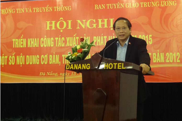 (Mic.gov.vn) - Sáng nay 13/3/2015, tại thành phố Đà Nẵng, Bộ Thông tin và Truyền thông đã tổ chức Hội nghị triển khai công tác xuất bản, phát hành và một số nội dung cơ bản, trọng tâm thực hiện Luật Xuất bản trong năm 2015.