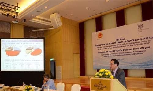 Cách đây một năm,với sự hỗ trợ kỹ thuật của Bộ Năng lượng và Biến đổi khí hậu Anh (DECC), cùng hỗ trợ tài chính thông qua Quỹ Biến đổi khí hậu Quôc tế (ICF) của nước này, các nhà làm chính sách tại các bộ ngành liên quan của Viêt Nam đã tiếp nhận phiên bản Calculator 2050, được xây dựng dựa trên phiên bản gốc của DECC. Tuy nhiên do hạn chế về thời gian, phiên bản Vietnam 2050 Calculator chưa được hoàn thiện về ngôn ngữ đan xen cả tiếng Anh và Việt, cũng như chưa có một số kịch bản chi tiết cho các phân ngành kinh tế.