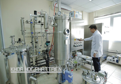 Nhà nghiên cứu Lê Văn Bình trong phòng lên men của Viện Công nghệ thực phẩm, Đại học Bách khoa Hà Nội. Ảnh chụp tháng 4/2016. Ảnh: Phượng Hằng