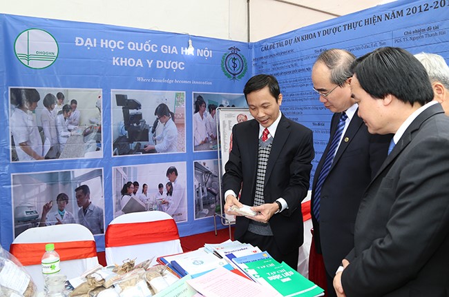 Đồng chí Nguyễn Thiện Nhân - Ủy viên Bộ Chính trị, Chủ tịch Ủy ban TW Mặt trận Tổ quốc Việt Nam thăm các gian hàng sản phẩm KHCN tiêu biểu của ĐHQGHN tại Triển lãm Tuổi trẻ sáng tạo chào mừng Đại hội Đảng toàn quốc lần thứ XII và Kỷ niệm 66 năm ngày truyền thống học sinh sinh viên Việt Nam (09/01/1950 – 09/01/2016)