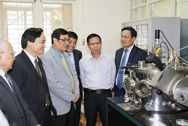 Đồng chí Đào Trọng Thi - Chủ nhiệm Ủy ban Văn hóa giáo dục TNTN&NĐ Quốc hội thăm một Phòng thí nghiệm tại ĐHQGHN năm 2015