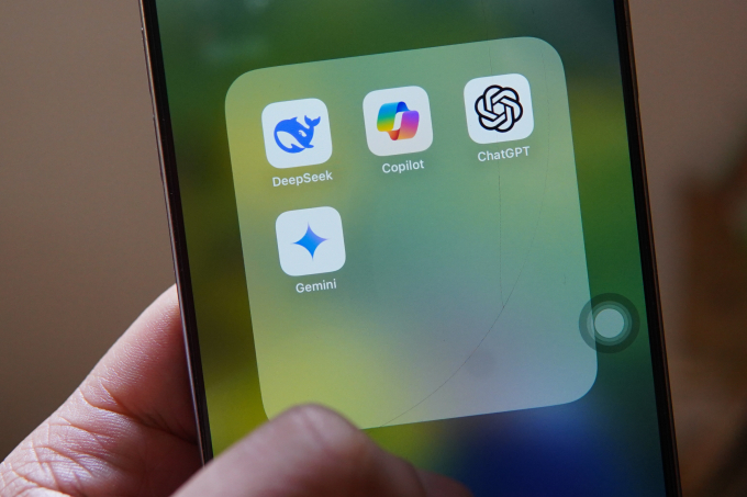 Logo các ứng dụng AI DeepSeek, Copilot, ChaGPT, Gemini trên điện thoại. Ảnh: Lưu Quý