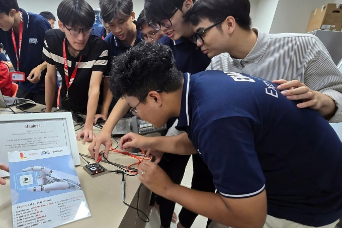 Nhóm nghiên cứu đo thử chip tại phòng thí nghiệm. Ảnh: NVCC