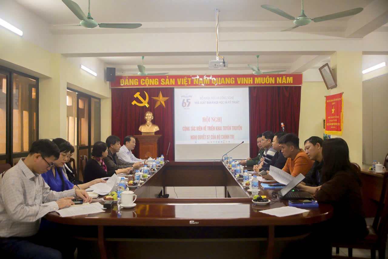 Ngày 13/3/2025, tại Nhà xuất bản Khoa học và Kỹ thuật, Hội nghị Cộng tác viên về triển khai tuyên truyền Nghị quyết số 57-NQ/TW của Bộ Chính trị về phát triển khoa học, công nghệ và đổi mới sáng tạo đã diễn ra với sự tham gia của lãnh đạo Nhà xuất bản, các cán bộ chủ chốt cùng Nhóm nghiên cứu chuyên sâu Nghị quyết 57. Hội nghị khẳng định vai trò nòng cốt của Nhà xuất bản Khoa học và Kỹ thuật trong việc tuyên truyền, phổ biến các chủ trương, đường lối của Đảng về phát triển khoa học, công nghệ, đổi mới sáng tạo và chuyển đổi số quốc gia. Nhà xuất bản Khoa học và Kỹ thuật là đơn vị sự nghiệp trực thuộc Bộ Khoa học và Công nghệ, có chức năng xuất bản phục vụ công tác quản lý nhà nước, nghiên cứu khoa học, phát triển công nghệ, đổi mới sáng tạo và chuyển đổi số. Với hệ thống xuất bản phẩm chất lượng cao, Nhà xuất bản đóng vai trò tiên phong trong việc truyền tải các nội dung khoa học - công nghệ, phục vụ phát triển kinh tế - xã hội và nâng cao nhận thức cộng đồng về cách mạng công nghiệp 4.0 I. Tập trung đổi mới nội dung và phương thức tuyên truyền Phát biểu khai mạc, Ông Bùi Minh Cường, Giám đốc - Tổng biên tập Nhà xuất bản Khoa học và Kỹ thuật nhấn mạnh vai trò then chốt của đội ngũ cộng tác viên trong việc đưa Nghị quyết 57-NQ/TW đi vào thực tiễn. Hội nghị đã thống nhất phương hướng, nội dung và giải pháp tuyên truyền hiệu quả nhằm lan tỏa tư duy đổi mới, thúc đẩy phát triển khoa học – công nghệ và nâng cao nhận thức của các tầng lớp nhân dân về chuyển đổi số trong bối cảnh cách mạng công nghiệp 4.0.