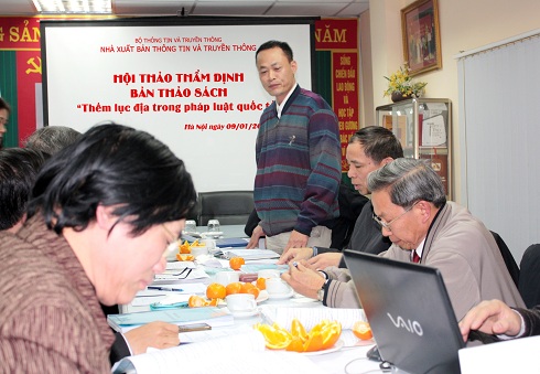 Chiều ngày 09/01/2012, tại trụ sở Nhà xuất bản Thông tin và Truyền thông đã diễn ra Hội thảo thẩm định nội dung bản thảo “Thềm lục địa trong luật pháp quốc tế” của PGS.TS. Nguyễn Bá Diến và ThS. Nguyễn Hùng Cường. Tham dự cuộc hội thảo có Bà Nguyễn Thị Thu Hà - Giám đốc, Tổng Biên tập Nhà xuất bản Thông tin và Truyền thông, Ông Phạm Minh Giang – Phó Cục trưởng Cục Thông tin đối ngoại, Bộ Thông tin và Truyền thông, PGS. TS. Nguyễn Bá Diến và Hội đồng thẩm định gồm: