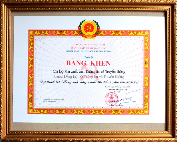 Sáng ngày 16/3/2012, tại Hội nghị tổng kết công tác năm 2011, triển khai nhiệm vụ năm 2012 của Đảng bộ Bộ TT&TT, Chi bộ Nhà xuất bản Thông tin và Truyền thông đã vinh dự được nhận Bằng khen cho Chi bộ đạt thành tích “Trong sạch”, “Vững mạnh” tiêu biểu 3 năm liền 2009 – 2011 do Đảng bộ Khối các cơ quan Trung ương tặng. Chi bộ Nhà xuất bản Thông tin và Truyền thông vinh dự là 01 trong 02 Chi bộ (trên tổng số 33 Đảng bộ/Chi bộ) thuộc Đảng bộ Bộ TT&TT được Đảng ủy Khối tặng Bằng khen giai đoạn này.