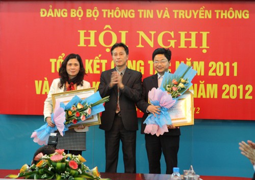 Cũng trong dịp này, đ/c Phan Kim Thương, Giám đốc Chi nhánh NXB tại TP.HCM được nhận Bằng khen của Đảng bộ Khối các cơ quan Trung ương tặng. Đ/c Nguyễn Thị Thu Hà – Bí thư Chi bộ, Giám đốc - Tổng Biên tập NXB TT&TT, đ/c Ngô Thị Mỹ Hạnh, Trưởng Ban Biên tập sách Khoa học Kỹ thuật – Giám đốc Trung tâm Truyền thông và Xuất bản trực tuyến, NXB TT&TT được Đảng bộ Bộ Thông tin và Truyền thông tặng Giấy khen cho Đảng viên có thành thích hoàn thành xuất sắc nhiệm vụ năm 2011.
