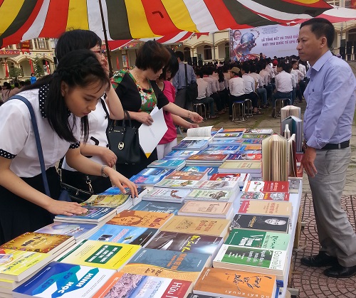 Độc giả tham quan gian trưng bày sách của NXB Thông tin và Truyền thông