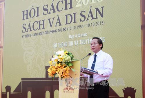 ![]() Ông Trương Minh Tuấn, Thứ trưởng Bộ Thông tin và Truyền thông phát biểu tại Hội sách Hà Nội 2015. Ảnh: Minh Quyết – TTXVN |