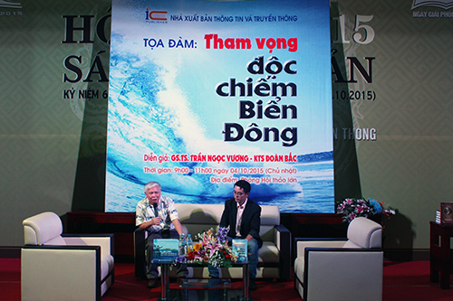 Trong khuôn khổ Ngày hội “Sách và Di sản” tại Hoàng thành Thăng Long, sáng ngày 04/10/2015, NXB Thông tin và Truyền thông đã tổ chức thành công buổi tọa đàm “Tham vọng Độc chiếm Biển Đông” – diễn giả GS. TS. Trần Ngọc Vương – chuyên gia nghiên cứu hàng đầu về Biển Đông và KTS. Đoàn Bắc. Buổi tọa đàm đã thu hút đông đảo bạn đọc tham dự.