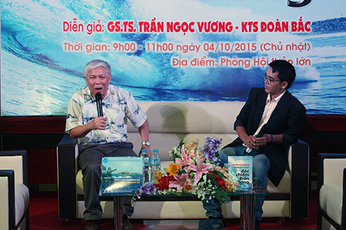 GS. TS. Trần Ngọc Vương cùng KTS. Đoàn Bắc đang giao lưu với khán giả