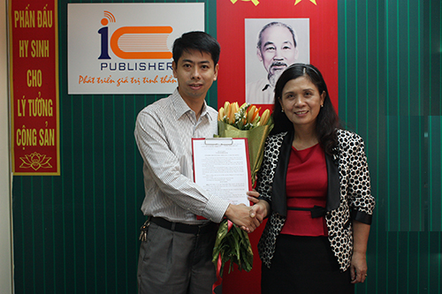Bà Nguyễn Thị Thu Hà, Giám đốc – TBT NXB trao Quyết định bổ nhiệm cho đồng chí Đàm Quốc Cường