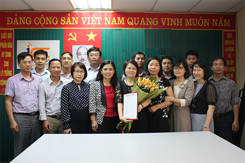 Bà Nguyễn Thị Thu Hà, Giám đốc – TBT NXB trao Quyết định bổ nhiệm cho đồng chí Nguyễn Thị Tuyết Mai