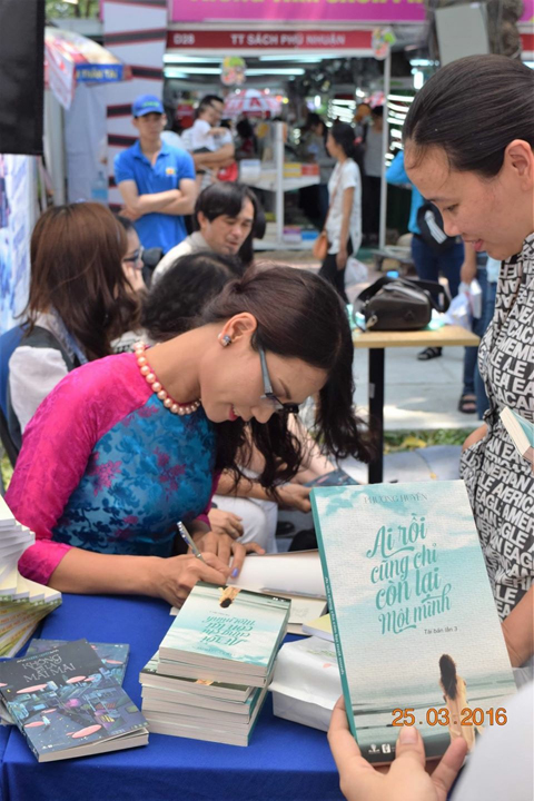 Nhà văn, MC Đoàn Phương Huyền ký tặng sách cho độc giả