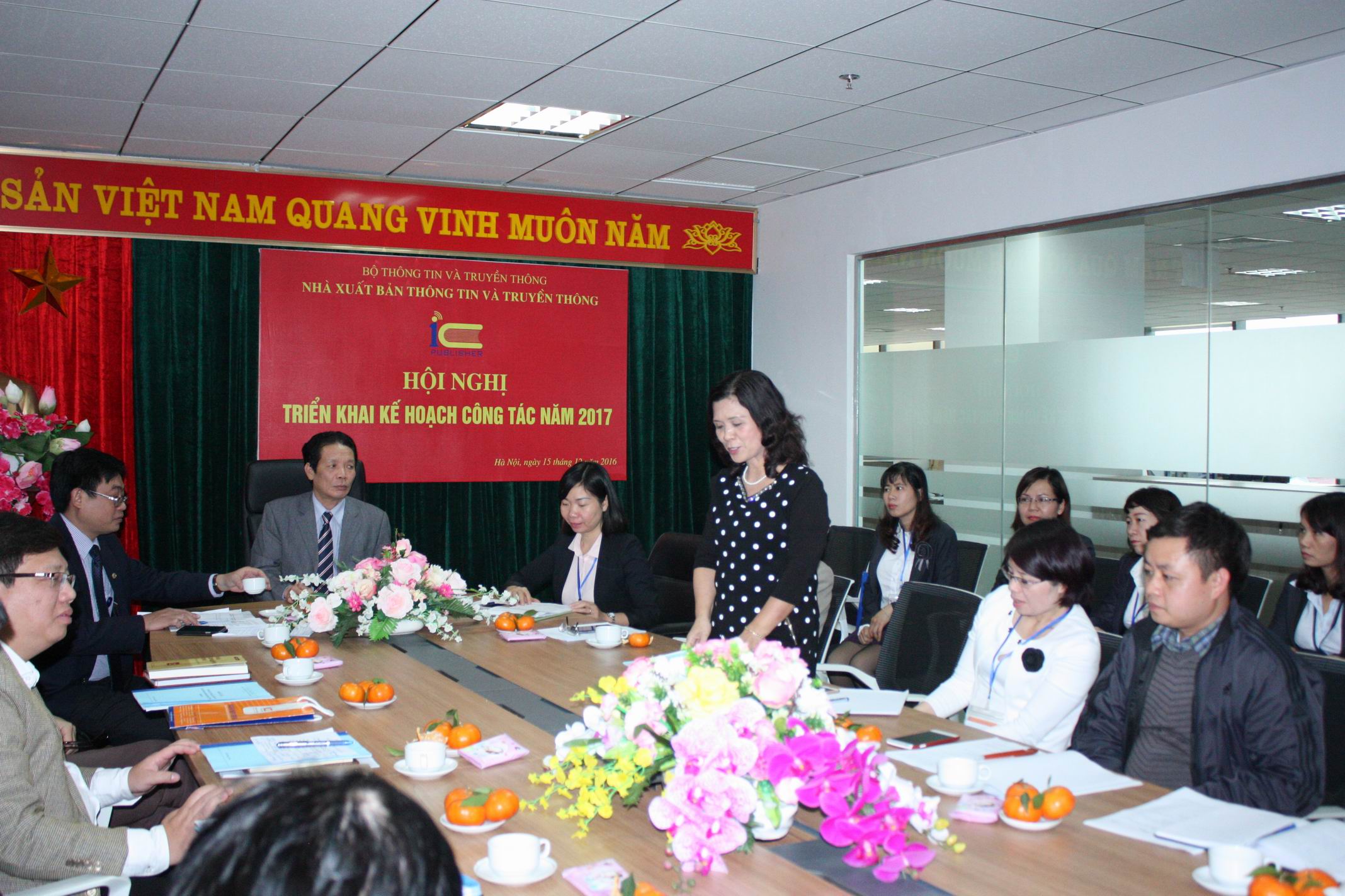 Sáng ngày 15/12/2016, tại trụ sở (tầng 6, tòa nhà 115 Trần Duy Hưng, Cầu Giấy, Hà Nội), Nhà xuất bản Thông tin và Truyền thông đã tổ chức Hội nghị triển khai công tác năm 2017. Hội nghị diễn ra trực tuyến tại cả bốn đầu cầu Hà Nội, Đà Nẵng, TP. Hồ Chí Minh và Tây Nguyên. Tới dự và chỉ đạo Hội nghị có Thứ trưởng Bộ Thông tin và Truyền thông Hoàng Vĩnh Bảo; cùng sự tham dự của lãnh đạo một số cơ quan, đơn vị thuộc Bộ và toàn thể cán bộ viên chức của Nhà xuất bản TT&TT ở cả bốn đầu cầu truyền hình.