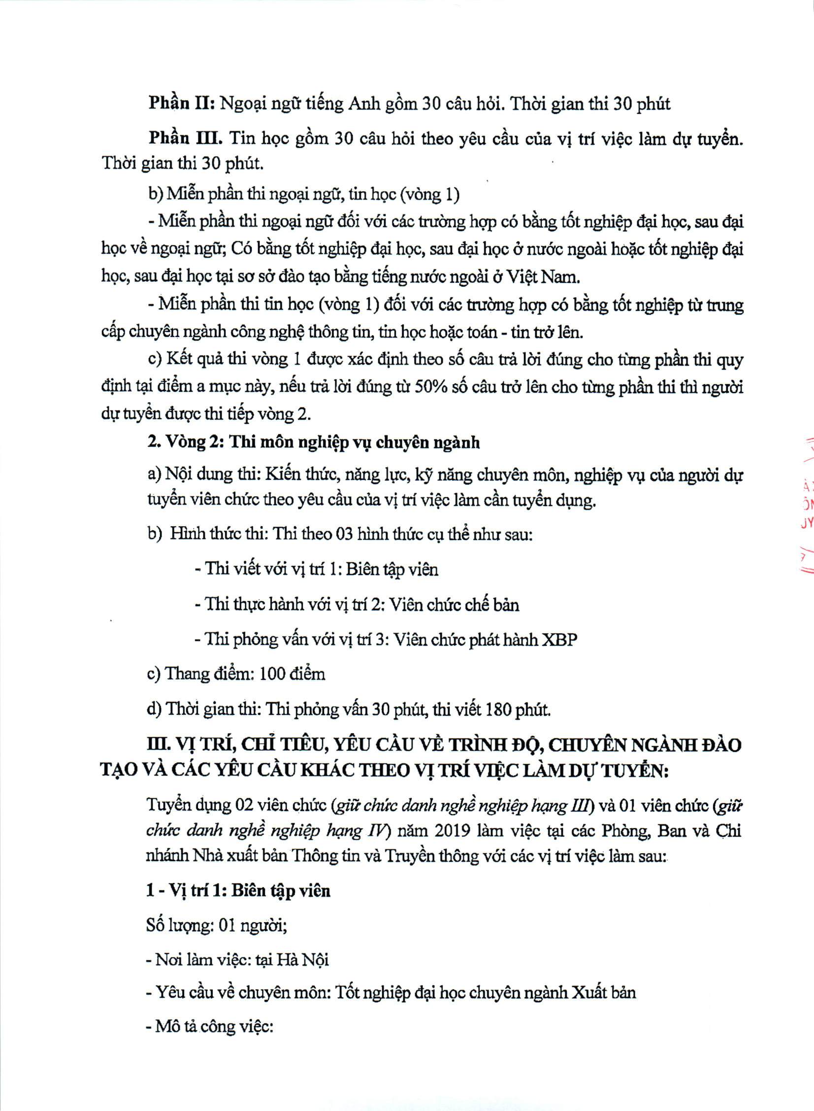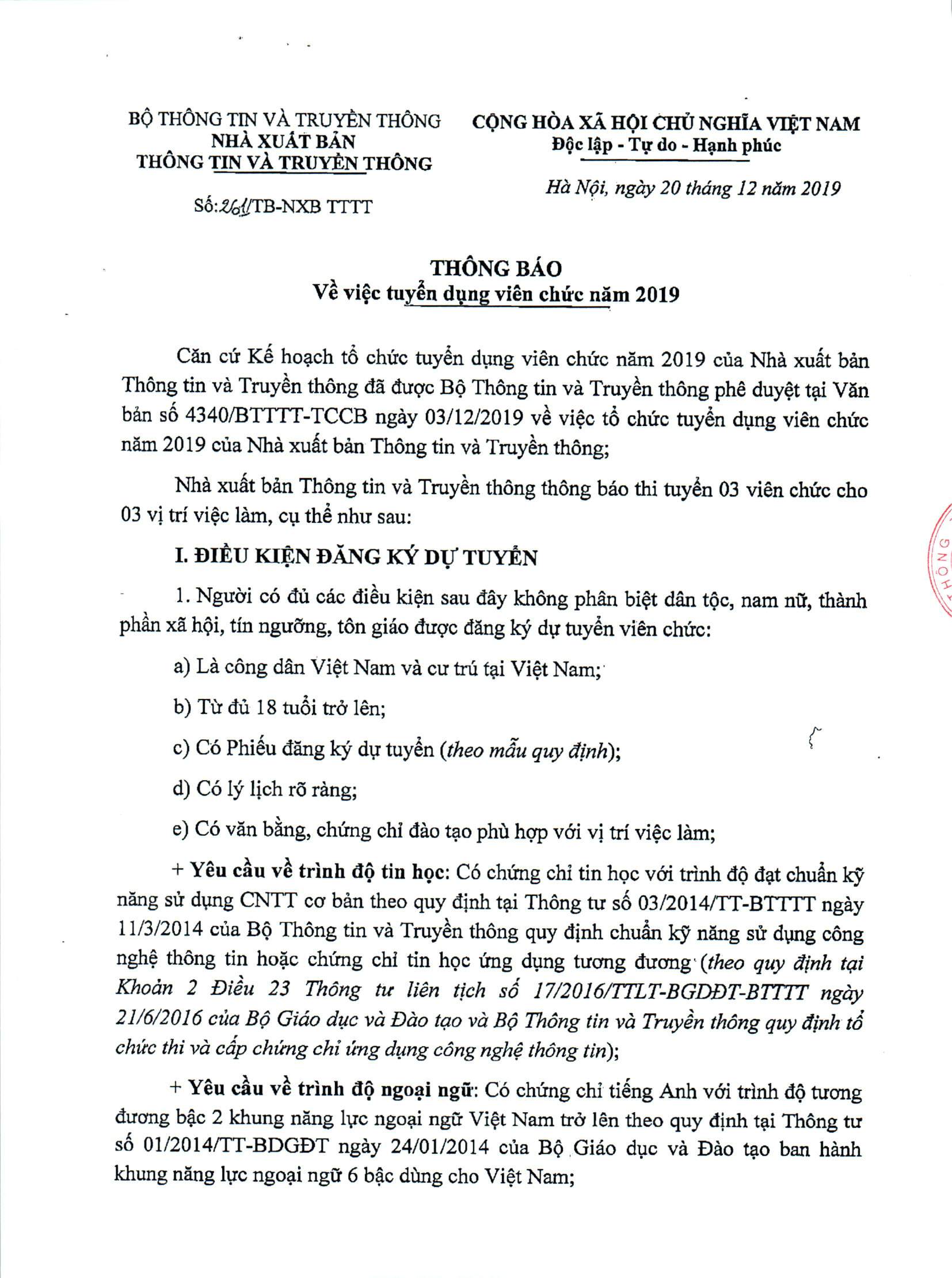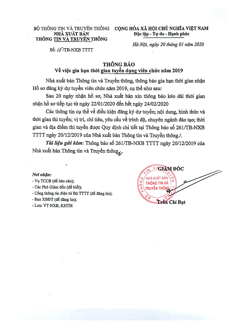 Thông báo về việc gia hạn tuyển dụng viên chức năm 2019.