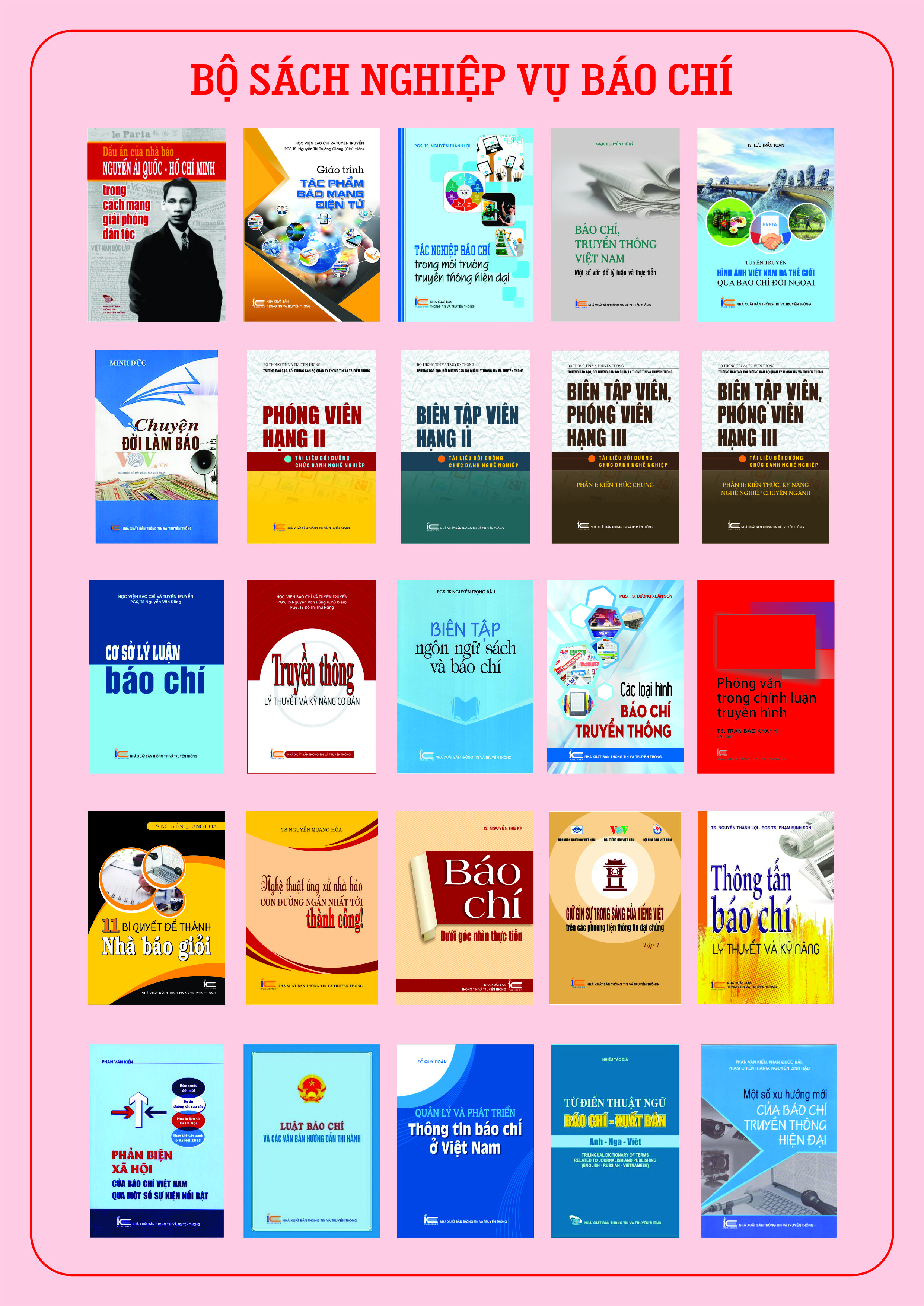 Nhân dịp kỷ niệm 95 năm Ngày Báo chí Cách mạng Việt Nam (21/6/1925 - 21/6/2020) và thực hiện Chương trình công tác trọng tâm năm 2020 được Lãnh đạo Bộ Thông tin và Truyền thông giao; Nhà xuất bản Thông tin và Truyền thông đã khẩn trương phối hợp với các chuyên gia, nhà quản lý, các nhà báo giàu kinh nghiệm về lĩnh vực báo chí, truyền thông cho ra mắt bạn đọc Bộ sách nghiệp vụ báo chí bao gồm 26 đầu sách ở các thể loại: Sách văn bản quy phạm pháp luật về báo chí; sách bồi dưỡng, đào tạo chuyên môn, nghiệp vụ báo chí; sách kỹ năng và các sách tham khảo khác về báo chí, tuyên truyền.