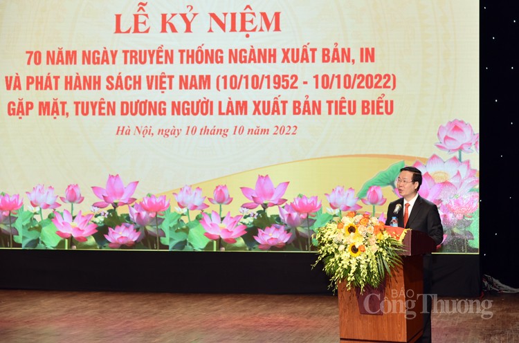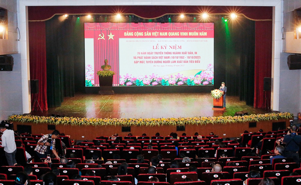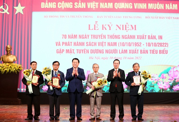 Chiều ngày 10/10/2022, tại Hà Nội, Ban Tuyên giáo Trung ương, Bộ Thông tin và Truyền thông và Hội Xuất bản Việt Nam phối hợp tổ chức Lễ kỷ niệm 70 năm Ngày truyền thống ngành Xuất bản, In và Phát hành sách Việt Nam (10/10/1952-10/10/2022) và Gặp mặt, tuyên dương người làm xuất bản tiêu biểu.
