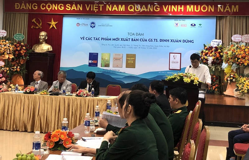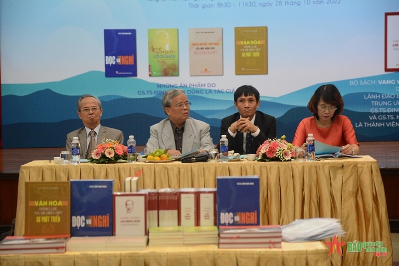 Tọa đàm giới thiệu những tác phẩm mới xuất bản của GS, TS Đinh Xuân Dũng từ cuối năm 2021 đến tháng 9-2022, gồm: “Đọc và nghĩ”, “Tìm về cội nguồn Hồ Chí Minh”, “Chăm lo bồi đắp, phát triển kiểu mẫu nhân cách Bộ đội Cụ Hồ”, “Văn hóa - động lực và hệ điều tiết sự phát triển” và “Vang vọng lời nước non”.